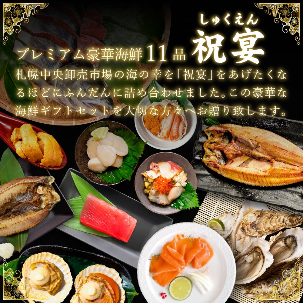 【ギフト】海鮮 北海道 豪華海鮮セット 11品 「祝宴」 ミョウバン不使用 生ウニ おおずわい マグロ【冷凍便】