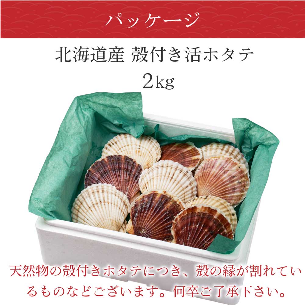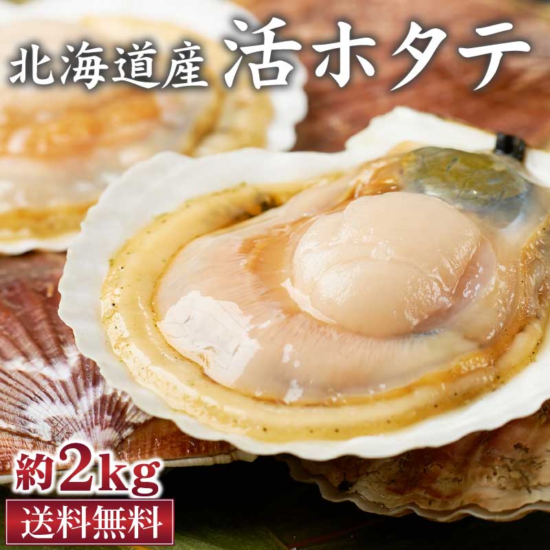 【海産物】北海道産 活ホタテ 殻付き 約2kg 刺身用 生食可【冷蔵便 生鮮品】
