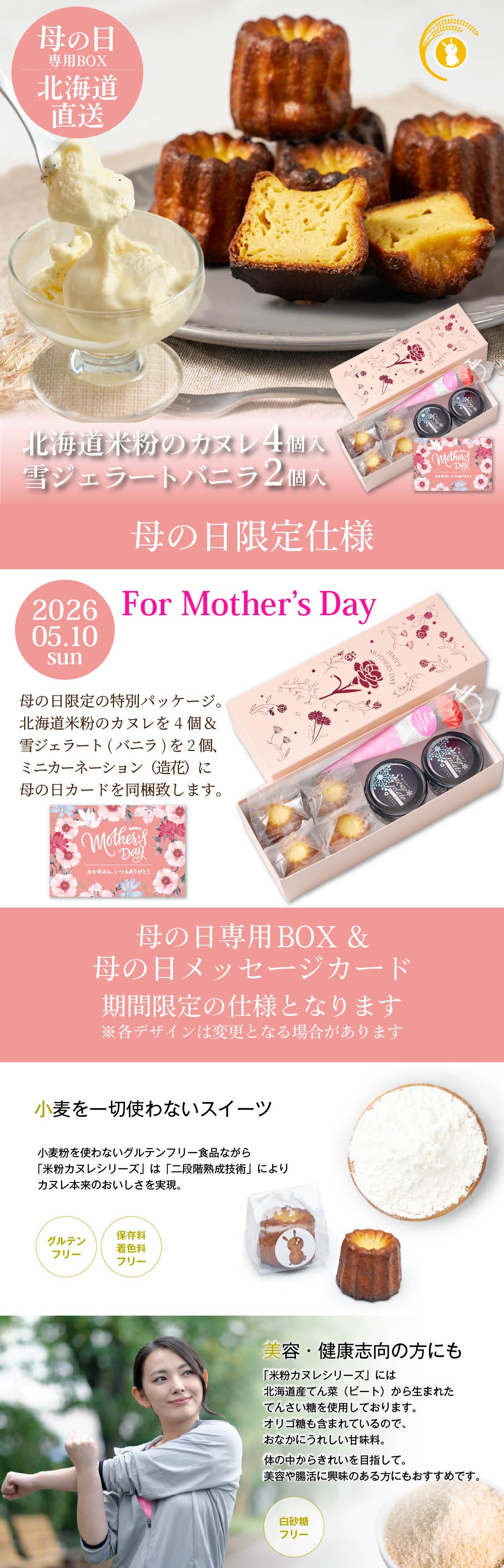 【母の日限定パッケージ】 カヌレ 北海道 米粉のカヌレ 8個セット メッセージカード 無添加 【送料込】【冷凍便】