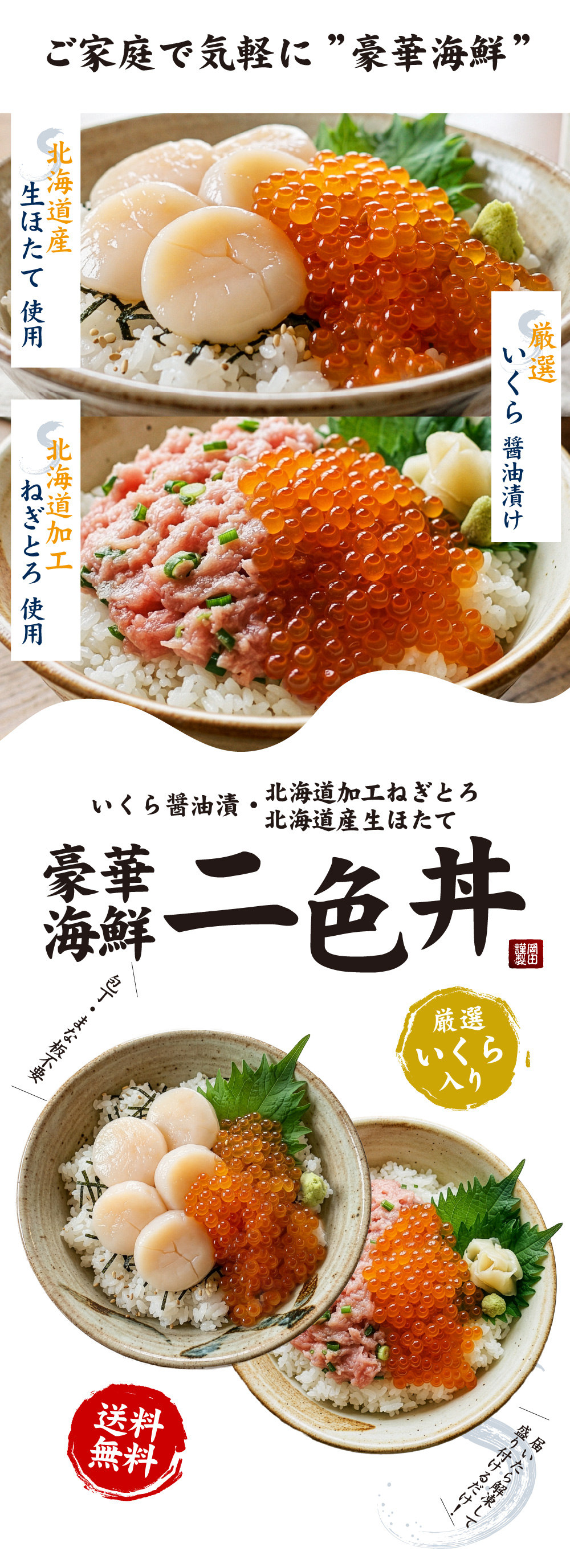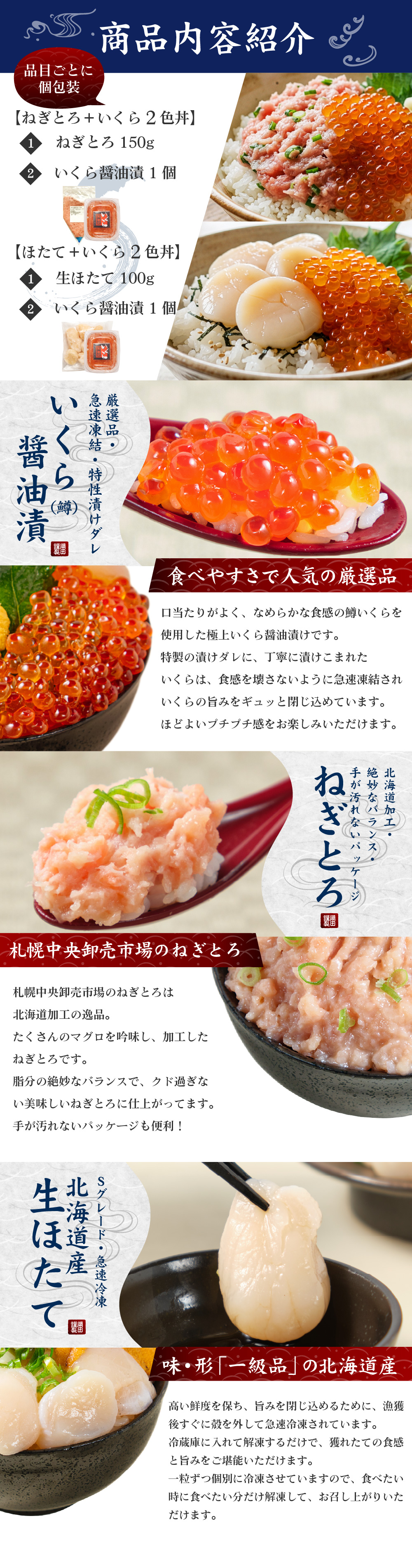 いくら ほたて ねぎとろ 北海道 海鮮 二色丼 海鮮丼セット 2色丼 海鮮 ギフト 刺身 冷凍 ネギトロ 海鮮 イクラ 【冷凍】