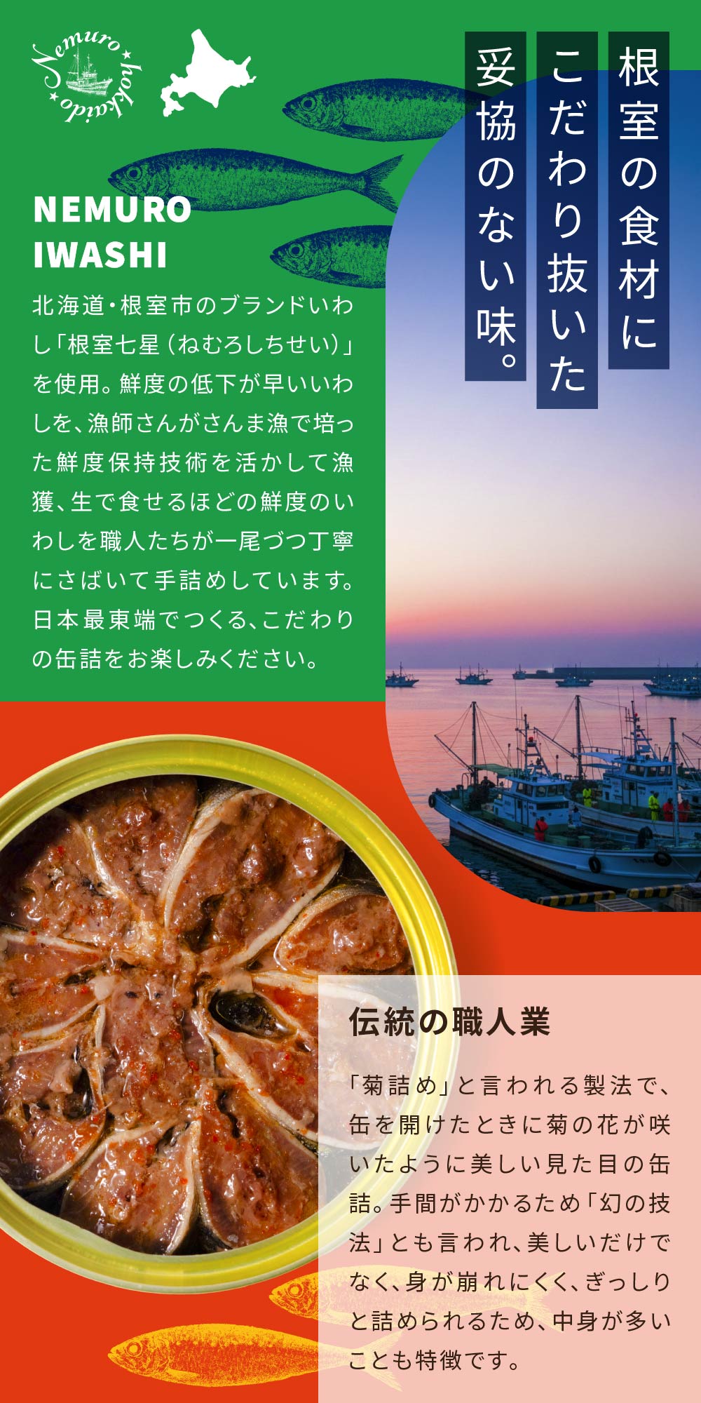 | 内容量 | IWASHI-北海道いわし醤油漬(唐辛子入) 95g×3缶 |