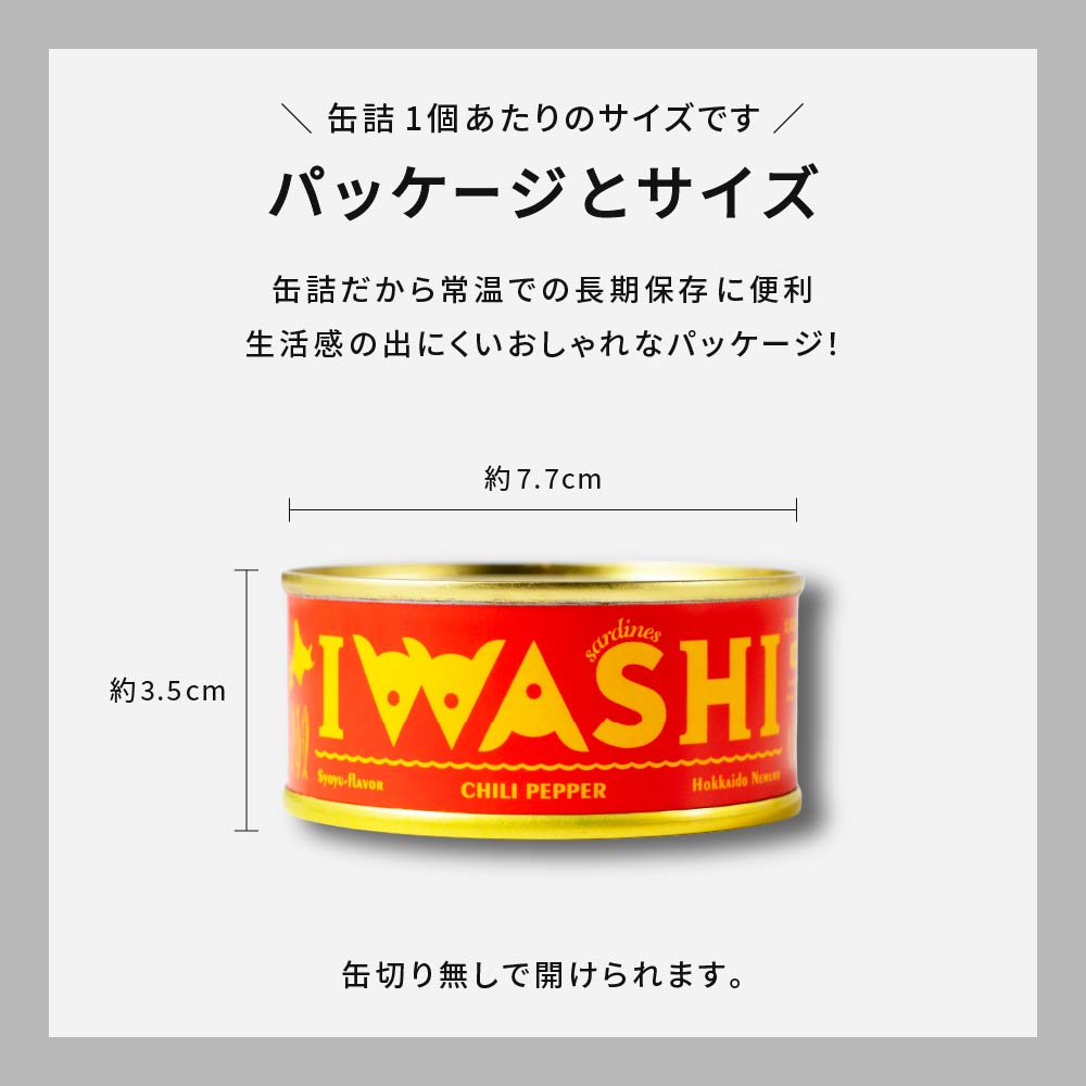 | 内容量 | IWASHI-北海道いわし醤油漬(黒胡椒入) 95g×3缶 |